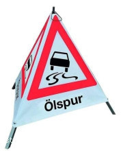 Eine Ölspur wurde mittels Bindemittel abgestreut und Warnschilder wurden aufgestellt.
