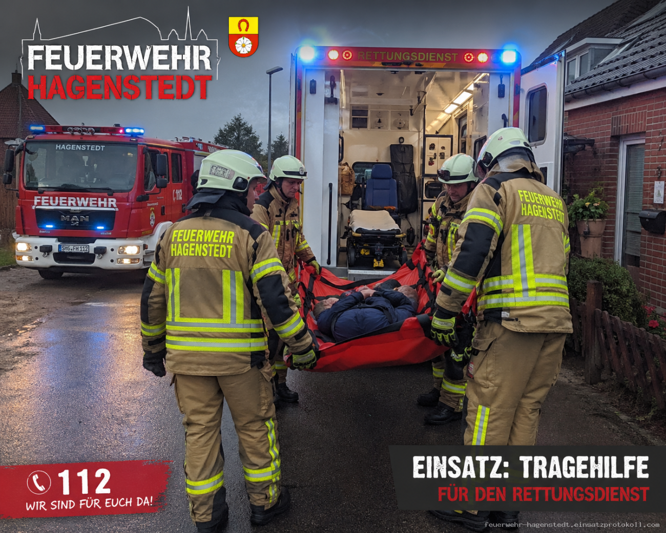 Tragehilfe für den Rettungsdienst aus einem Wohnhaus in Hagenstedt.